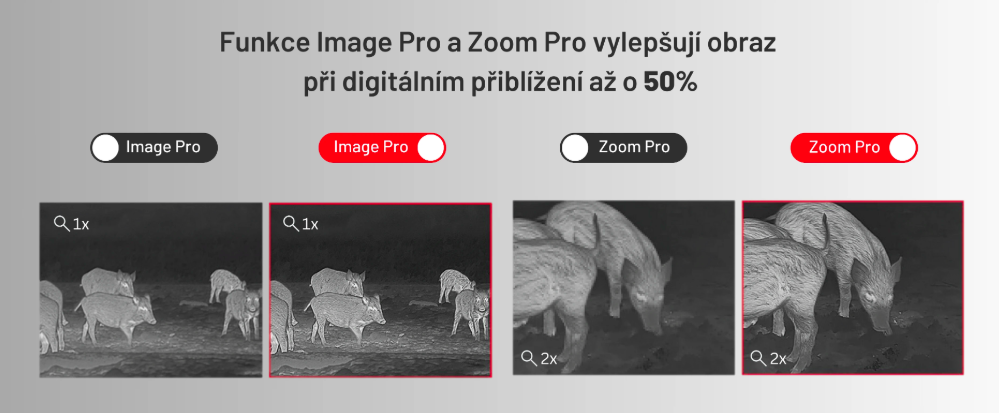 Pro ještě kvalitnější obraz přicházejí funkce Image Pro a Zoom Pro, které až o 50% vylepšují obraz při digitálním přiblížení. Pokročilé technologie zpracování obrazu přináší čistší a detailnější obraz vykreslený na displeji OLED s rozlišením 1024 × 768 px.