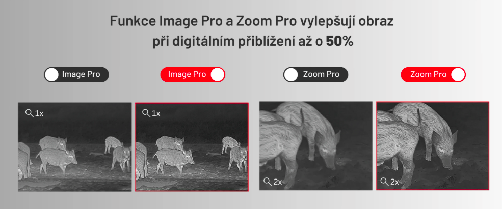 Pro ještě kvalitnější obraz přicházejí funkce Image Pro a Zoom Pro, které až o 50% vylepšují obraz při digitálním přiblížení. Pokročilé technologie zpracování obrazu přináší čistší a detailnější obraz vykreslený na displeji OLED s rozlišením 1024 × 768 px.