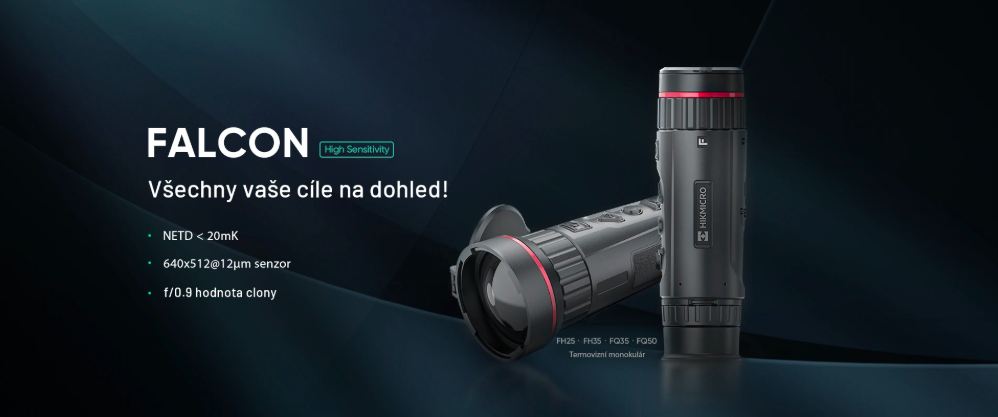 Hikmicro Falcon podporuje funkce hot track (sledování nejteplejšího bodu v obraze), poměrového dálkoměr a Wi-Fi. FQ35 umožňuje detekci až na 1800m a výdrž baterie je úctyhodných 5 hodin nepřetržitého provozu.