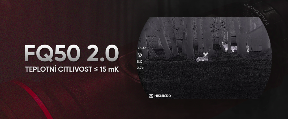 Monokulár Falcon FQ50 2.0 je vybaven termovizním senzorem s rozlišením 640 × 512 px a teplotní citlivostí NETD ≤ 15 mK, díky čemuž zachytí i ty nejmenší teplotní rozdíly a poskytne dokonale detailní obraz za všech podmínek.