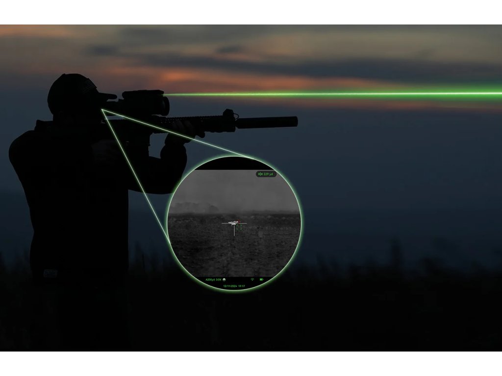 - vestavěný laserový dálkoměr s dosahem až 1100 m