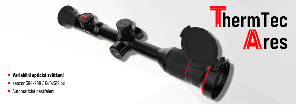ThermTec přichází s novým termovizním zaměřovačem ve tvaru puškohledu ARES 660, který je prvním termovizním puškohledem s variabilním optickým zvětšením! Má jádro o rozlišení 640x512px s citlivostí <35mk (při 25 °C), AMOLED displej 1024×768px a kvalitní čočku s ohniskovou vzdáleností 60 mm z germania. Tyto parametry zajišťují krásně čistý obraz v drsných podmínkách prostředí jako je tma, mlha, kouř, prach, déšť, sníh a lesní porost. Tradiční tubusový design s 60 mm čočkou splňuje potřeby profesionálních lovců, kteří si cení tradic a hledají technologickou převahu s extrémním dosahem detekce až 3000 metrů. Široké možnosti nastavení dovolí plně upravit obraz tak, aby perfektně splňoval vaše požadavky. Toto vše podporuje Váš perfektní zásah cíle při lovu, nebo ochraně majetku.