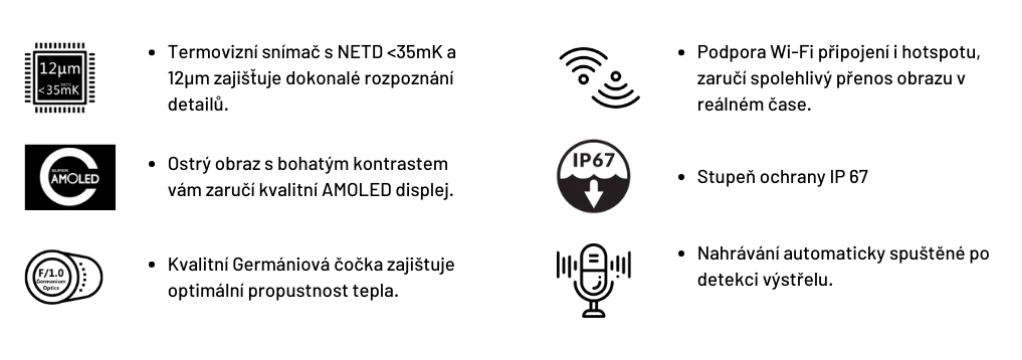 Ares disponuje unikátní bezzávěrkovou technologií, která eliminuje nepříjemné pravidelné zaseknutí obrazu, typické pro termovize, a díky tomu poskytuje plynulý obraz bez rušivého sekání, které by mohlo ohrozit přesný zásah.